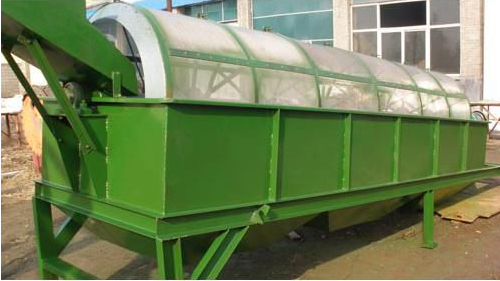 滾筒分篩機由電機、減速機、滾筒裝置、機架、密封蓋、進出料口等部分組成。滾筒裝置傾斜安裝于機架上。 電動機經減速機與滾筒裝置通過聯(lián)軸器連接在一起,驅動滾筒裝置繞其軸線轉動。